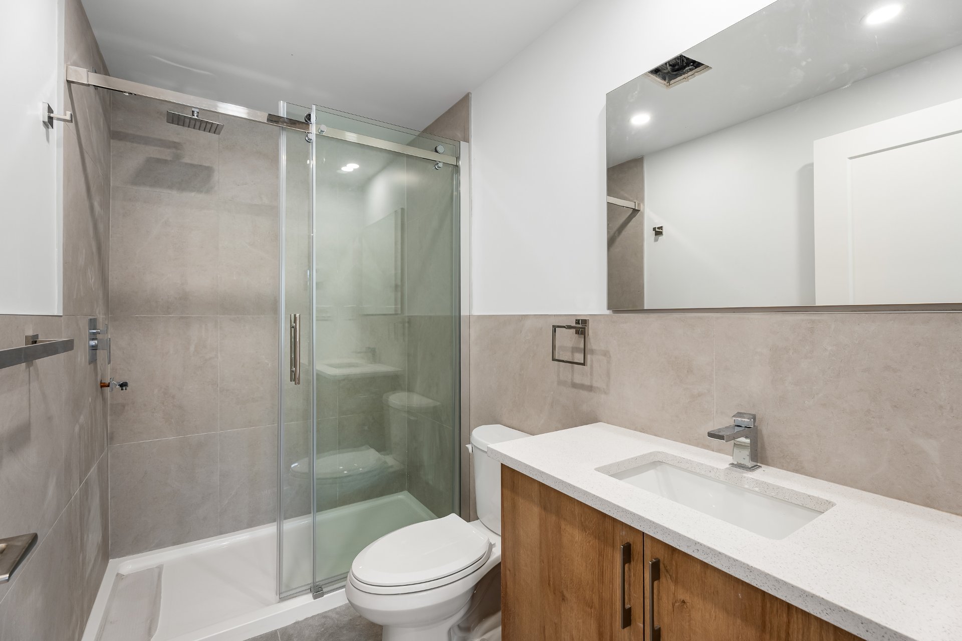 Salles de bains neuves : design élégant, épuré et fonctionnel.